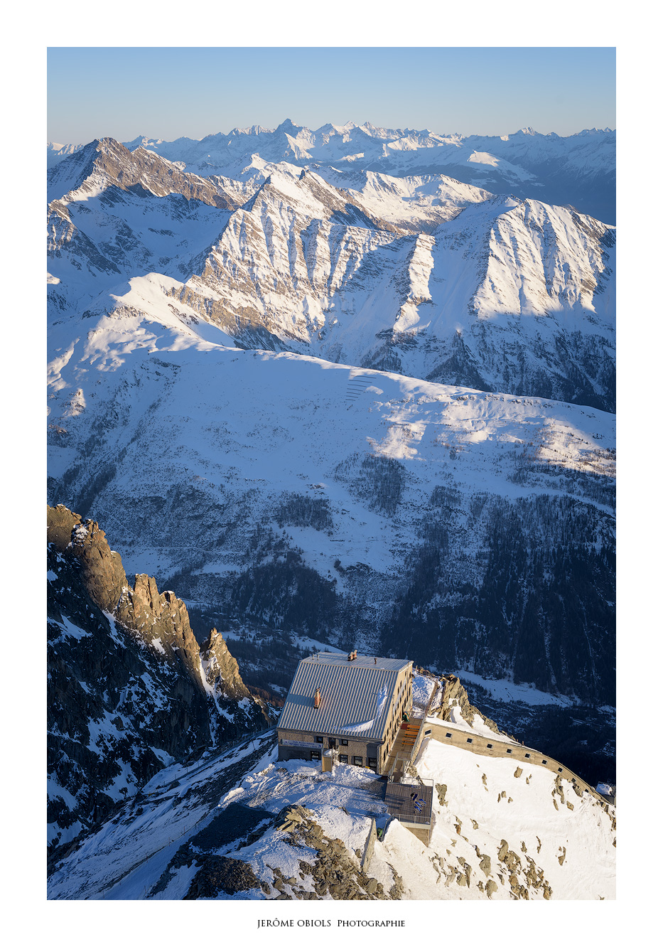 Fin décembre, j’ai décidé d’y rendre visite pour un peu de repérage photo. On y accède par le tout nouveau téléphérique « Skyway Monte Bianco » dont la gare d’arrivée a des airs de vaisseau spatial. Il es doté d’une cabine ronde qui tourne sur elle même durant l’ascension. C’est vraiment une bonne expérience, qui change des téléphériques classiques.